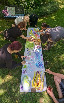 WTR is woven into many of the nature-based expressive arts and ecotherapy practices that I facilitate in retreats and online circles. During a recent retreat in North Carolina, I invited participants to engage in practices designed to help them embrace emotional pain and collective grief as highly sensitive people—without getting stuck in it. These practices included gratitude, a grief ritual, interactive nature connection, embodied movement, and collective art.