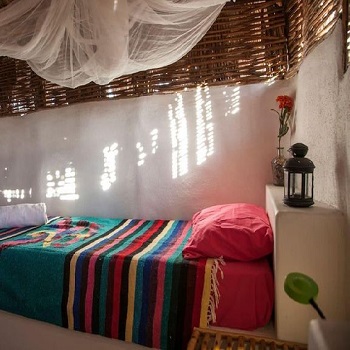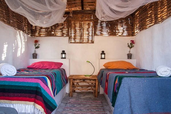 Eco-Casitas: La Duna offers 8 simple desert eco-casitas with stone floors, stucco walls, and thatch roofs modeled after homes native to the region. Each casita can accommodate up to two people with either a queen or two slightly smaller than twin-sized beds. The casitas are small, so unless you’re signing up with a close friend, we recommend single occupancy. Each casita comes with solar-powered lamps and mosquito nets.