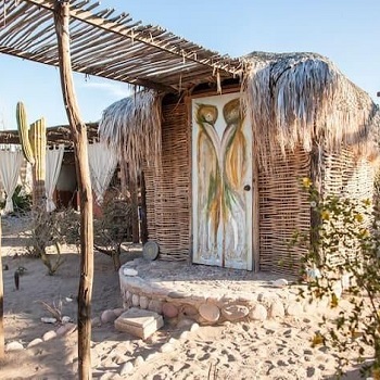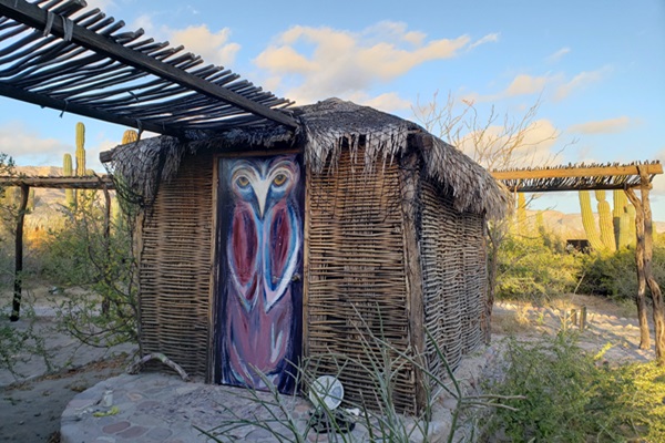 La Duna has 8 desert eco casitas, which circle the palapa. Each be offered as single occupancy with a queen bed. If joining with a friend, we can offer shared/double occupancy in single beds. Casitas do not have electricity, but come with solar-powered lamps and mosquito nets. Air conditioning is not needed; temperatures are very cool at night this time of year. Casitas share common bathroom facilities.