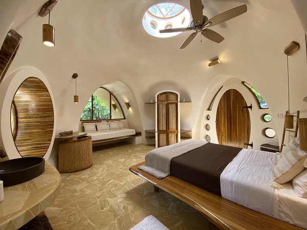 Accommodations: Inspired by nature’s design, Brave Earth offers a variety of rooms as they’ve experimented with different building modalities and materials such as AirCrete and locally-sourced wood, bamboo, and clay. Some rooms have air conditioning and others offer fans. A limited number of rooms have en-suite bathrooms. Others share 6 dry composting toilets and 6 showers located throughout the center for easy access. Please review each room description.