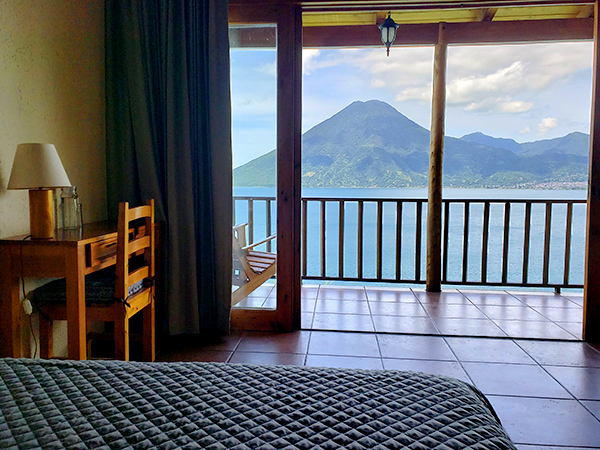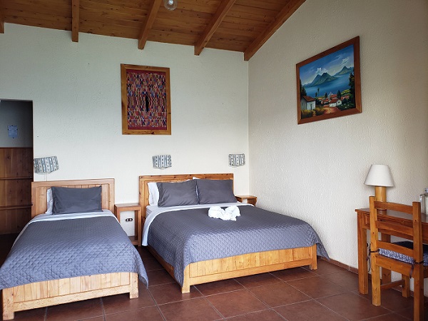 The photos are room examples. Single Occupancy rooms have ensuite bathrooms & private balconies with volcano views. If you book Shared Occupancy, you’ll share a room with 1 person in Antigua. At the lake, you’ll have a small private room with an attached bathroom, which you’ll share with 1 other person